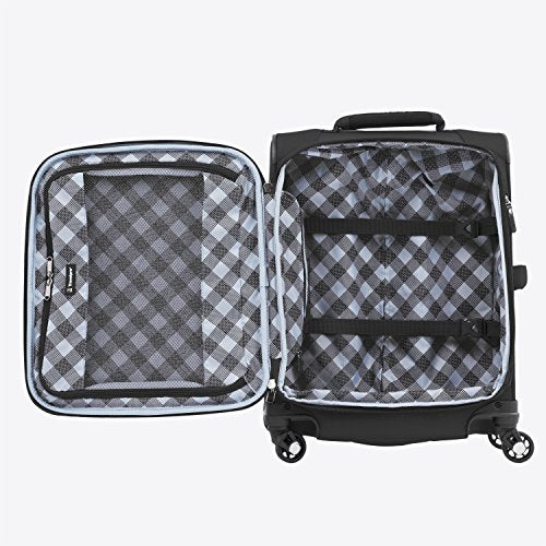 Details: Take travel to new lights with Travelpro Maxlite 5 luggage. Now, up to a half-pound lighter* and professionally tested for ultimate durability, this soft-sided luggage collection was thoughtfully designed for convenience and comfort. From carry-on totes and garment bags to smooth gliding Rollaboard bags and 4-wheeled spinner suitcases in multiple sizes, the Maxlite 5 line is built strong using lightweight materials that resist wear and tear, even though the most rigorous use. *Compared to Maxlite 4 collection. Polyester fabric with DuraGuard coating resists water and stains to keep luggage looking great. Ergonomic, high-tensile-strength zipper pulls are tough yet easy on the hands. H20 Guard protects the interior lining from moisture. Unobtrusive rear straps fit around the extension handle of a Rollaboard or spinner suitcase for secure stacking and hands-free mobility. Backed by Travelpro Built for A Lifetime Limited Warranty!