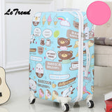 Letrend Cute Bear Student Rolling Luggage Spinner Children Cartoon Trolley Suitcase Wheels 20
