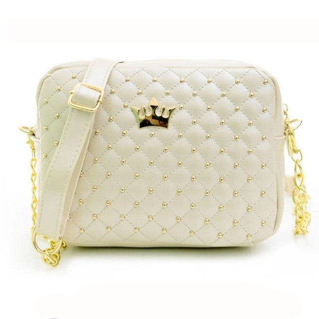 2016 Women Bag Solid Candy Colors Ladies Rivet Chain Leather Crossbody Quiled Crown Bags Women'S