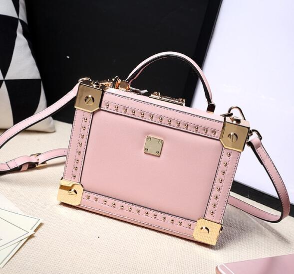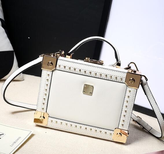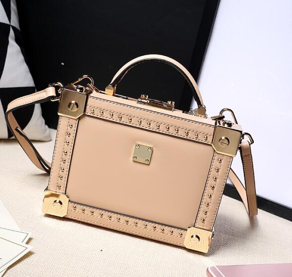 Good Quality Fashion Style Box Shape Genuine Leather Rivet Ladies Handbag Shoulder Bag Totes