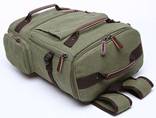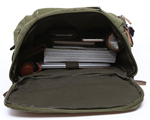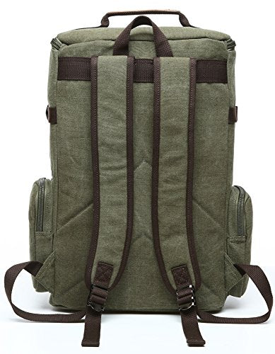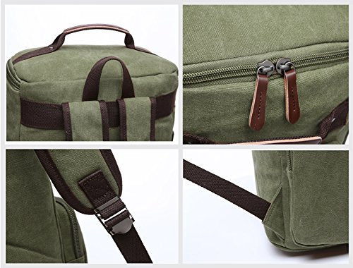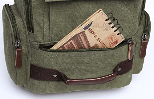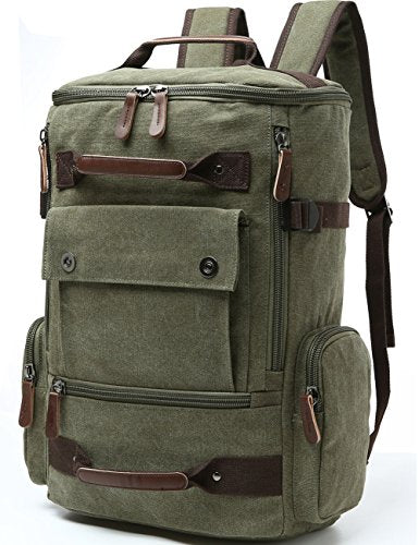 - Plenty of pockets: 6 pockets outside, one laptop compartment ( fit 17'' Laptop) and two open pockets inside. It's a good size canvas backpack for school, travel, hiking, sports, outdoor and casual daily use. Durable zipper closures and good quality zippers make this bag can work many years.