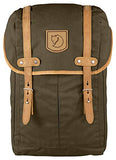 Details: Large backpack in classic Fjallraven style, made from a more durable version of our waxed G-1000. Perfect for both everyday use in town or time spent in the forest. The clean lines and functional details in natural tone leather mean that it meets all of the requirements to become a favourite for many years to come. The main compartment is loaded from the top, comes equipped with a snow lock and has an inner pocket with a padded bottom to hold a laptop. It also has a removable seat pad and a pocket that holds a thermos in an upright position, and the light-coloured lining makes it easier to see the contents. The top lid is held in place by straps that attach to metal nubs on the front. One large front pocket and side pockets.