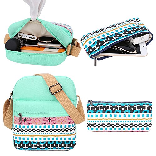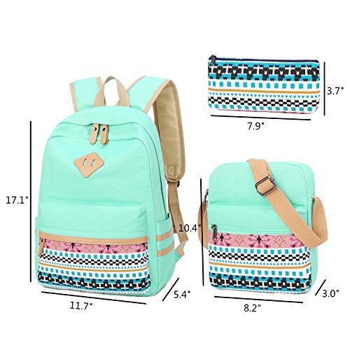 - BLUBOON backpack set: girls canvas backpack + shoulder bag + clutch pouch.