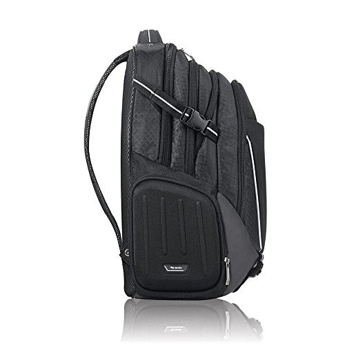 Details: Solo 17.3 Laptop backpack provides the carrier with many functional features that include a padded compartment that protects laptops up to 17.3” and MacBooks up to 17”, dedicated interior pocket for iPad or tablet, front zip-down organizer section, hard shell side zippered pockets, reflective strip for increased visibility and a 5 year warranty.
