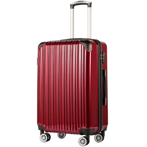 Coolife Luggage Expandable(only 28") Suitcase PC+ABS Spinner 20in 24in 28in Carry on (wine wind new, S(20in)_carry on)