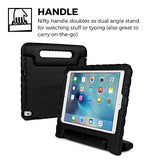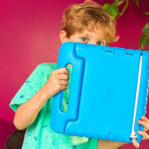 - 2-IN-1 BULKY HANDLE FOR CARRYING & STANDING - comfortable grip handle designed as one hand carrier (perfect for smaller children hands) for easy carry and travel. Handle folds into hands-free upright stand for learning music, watching video, reading books, playing games and using educational apps. Kickstand display for better typing & drawing angle. Case handle can be mounted to car headrest for back seat entertainment.
