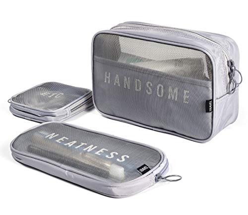 - MULTIPLE COMPARTMENTS :3 different sizes storage bags meet your various needs.Mesh Breathable see through makeup bag ideal for cosmetics,makeup bottles and toiletries.Transparent design allows you to see all the things easily.Medium pouch bag ideal for palettes,makeup tools;Small bag can used as a PURSE bag for keys,coins,cash,cards or other small items