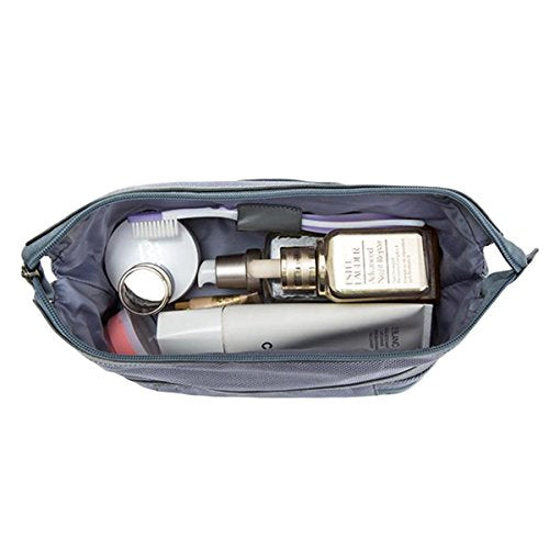 - Medium Capacity Cosmetic Bag - Approximate Dimensions: 9.1" x 5.1" x 5.9" (LxWxH). Roomy main compartment for all your small travel accessories, like toothbrushes, deodorants, travel sized shampoo, toothpaste, combs, makeup and shaving creams
