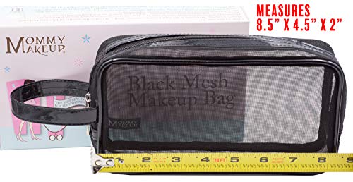 - CHIC BLACK MESH MAKEUP BAG is an ideal size for your makeup and cosmetics.