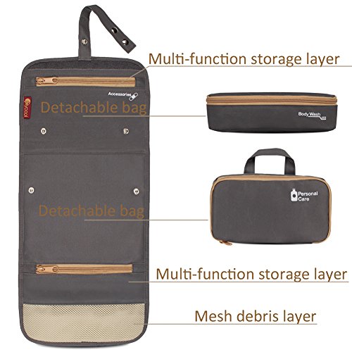 • UNIQUE DESIGN: FLYCOOL toiletry kits with fold up design has two detachable compartments. And toothbrush mesh pocket lets toothbrushes are separate from the other products. Which makes this travel kit become useful and convenient.