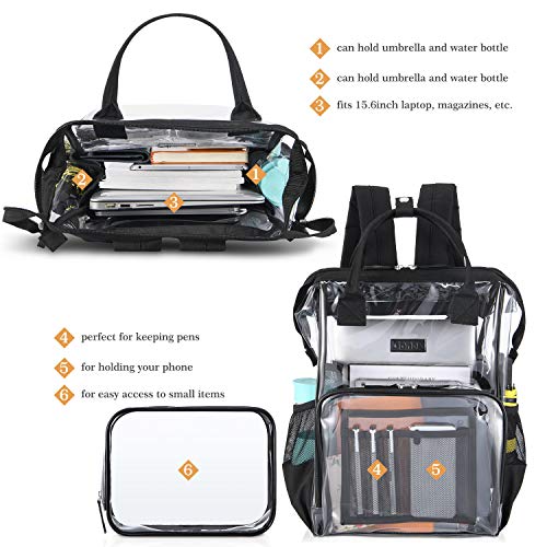 Details: Gonex Clear Backpack with Cosmetic Bag, Transparent Backpack Fits 15.6 inch Laptop for School, Work, Travel