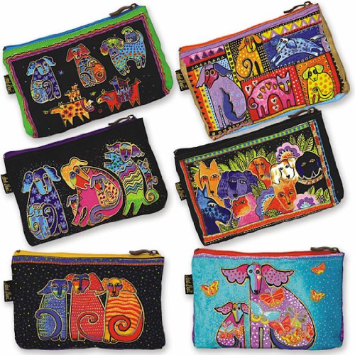 Details: Made from durable cotton canvas. Very popular artist, Laurel Burch Dog Tales. 6 designs to choose from. Size of bag: 9 x 1 x 6". Laurel Burch original zipper pull. Waterproof lining inside. Great gift idea for your friends and family.