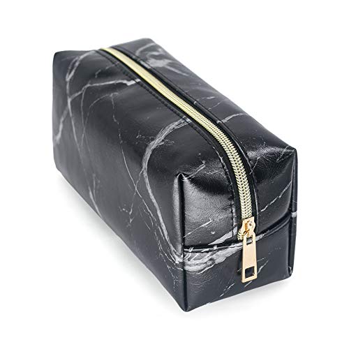 Leather Marble Makeup Bag Portable Waterproof Cosmetic Bags for Women Brushes Bag Pouch Organizer Toiletry Bag (Black)