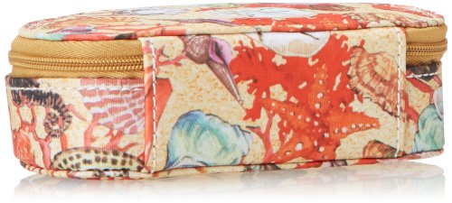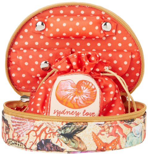 Details: 60916 Features: -Seashell collection. -Material: Soft and lightweight nylon fabric. -Designed by Christine DeGennaro. -Stylish jewelry case in a brilliantly colored botanical pattern. -Zip around entry with sydney love zipper pull. -Ring holder with snap closure pouch with cinch tie for all of your other valuables. Exterior Material: -Fabric. Interior Material: -Fabric. Finish: -Multicolored. Style: -Contemporary. Shape: -Round. Interior Storage Included: -Yes. Product Type: -Travel case. Interior Storage Type: -Ring roll/Drawstring pouch/Snap pocket. Dimensions: Overall Height - Top to Bottom: -3.5". Overall Width - Side to Side: -5.25". Overall Depth - Front to Back: -1.5". Overall Product Weight: -0.5 lbs.