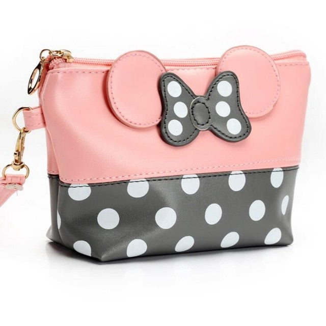 Travel Cosmetic Bag Cartoon Bow Makeup Case Women Zipper Hand Holding Make Up Handbag Organizer