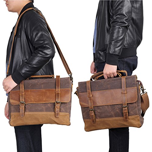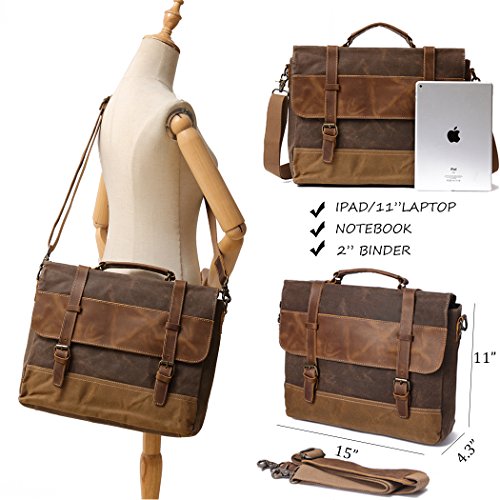 - 100% Full-grain Crazy Horse leather & Waxed Canvas (15" L x 11" H x 4.33")