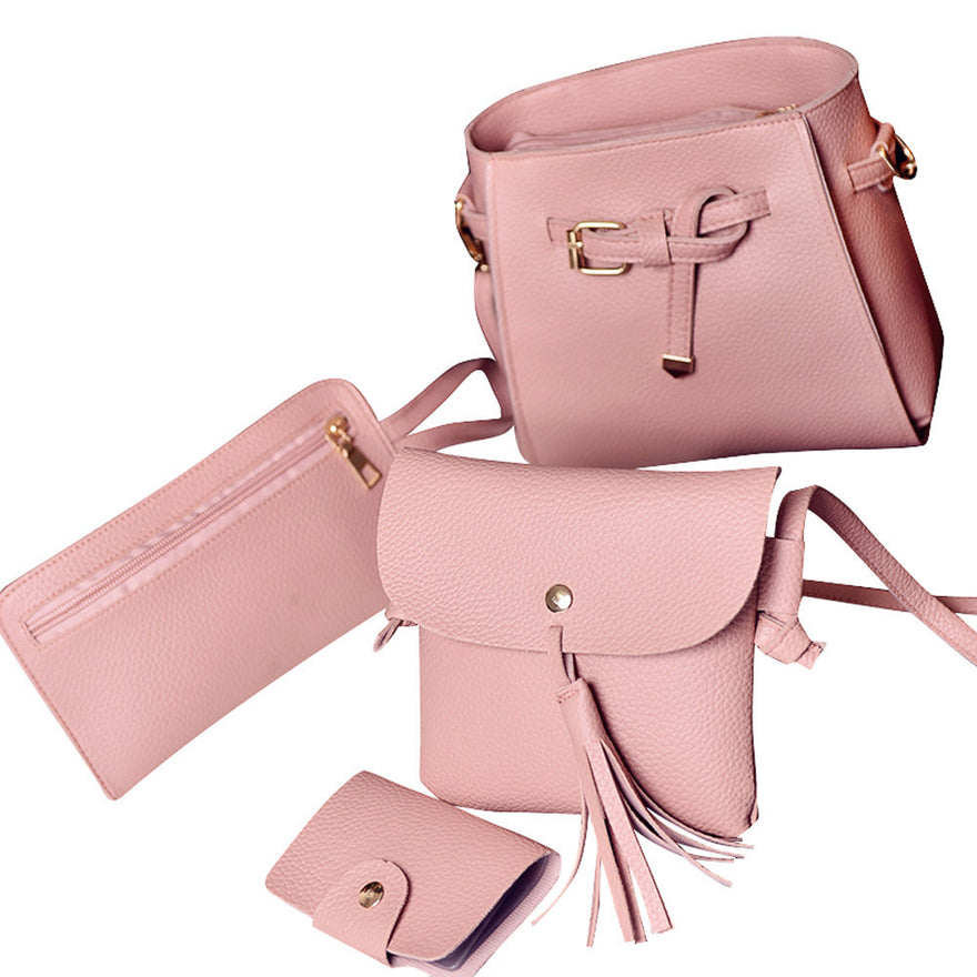 Women Four Set Fashion Handbag Shoulder Bags Four Pieces Tote Bag Crossbody Wallet