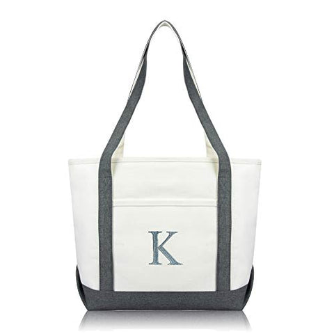 DALIX 20" K-Initial Tote Bag Monogrammed Cotton Canvas in Gray