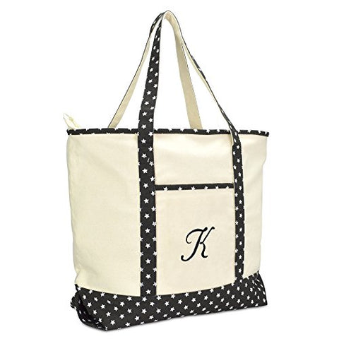 DALIX Personalized Shopping Tote Bag Monogram Black Star Ballent Zippered Letter- K