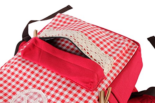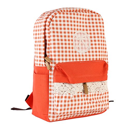 Details: This backpack is prevailing among students! The front is adorned with lace bowknot logo. Checked print that spliced with pure color is pretty fashionable. This bag has one small zipper closure to hold things that are usually used, and two side layers to carry headphones or music players outside. Inside is 1 shockproof layer with velcro fastened to save your computer or ipad, 1 large layer to carry books or files. There are two soft shoulder straps that can reduce the stress of your shoulder. Main layer can be opened with two zippers in two directions. This backpack is multifunctional that can also been used as a travelling bag or school bag. Measurement details in: length 44cm (17.4 inches); width 34cm (13.3 inches); height 8cm (3.1 inches).