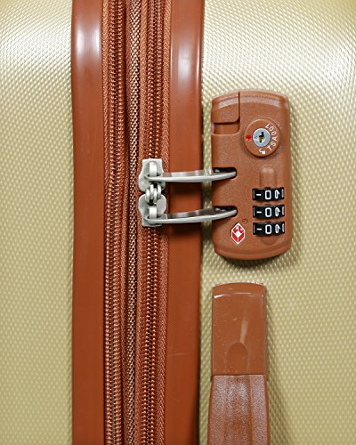 • ABS with brown trim, fully lined interior, dual interior compartments, protected corners and one internal organizational pocket, Built-in TSA three-digit combination lock, spinner wheels, push-button telescopic handle, silver pewter hardware, padded top and side grip handles