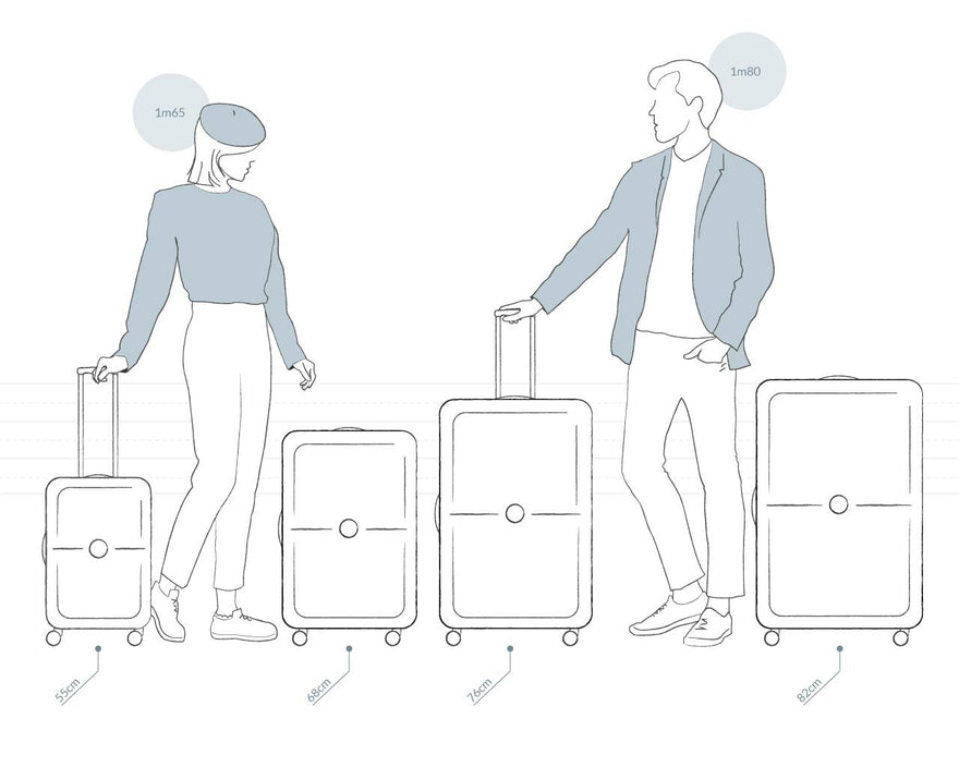 - Outside: 65 cm trolley case, 4 double silent wheels and multidirectional for a better rolling comfort , equipped with Zip securities 2( sliding 3 times more resistant and 41 times more resistant to intrusion) , TSA combination lock, top handle and side handle for an easier carriage