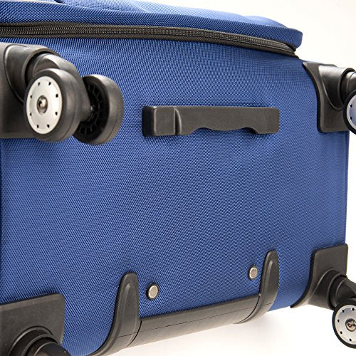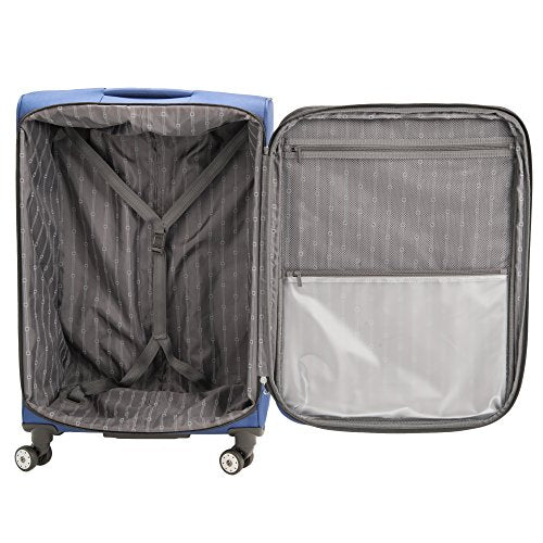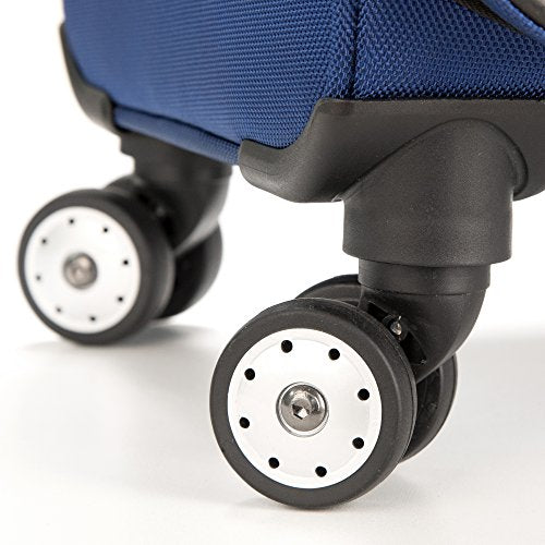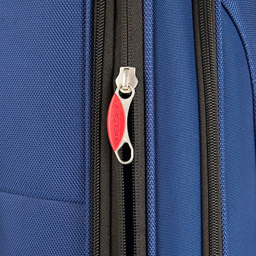 Details: The aero soft side collection by delsey is the soft side family member to the top rated collection, helium aero by delsey. This fully featured 29 inch suitcase offers all of the components of the hardside collection with the flexibility of a soft side suitcase. This case is expandable up to 2 inches, has four double spinner wheels for extra stability and ease of use, dual locking handle, and fully lined interior with tie down straps and multiple interior compartments including wet pocket and zippered mesh pocket for small accessories. The exterior of the case has 2 zippered pockets for last minute items, as well as a kick plate for stability, top, side and bottom carry handles for easy lifting. An integrated id tag on the side of the case keeps personal information hidden. Worldwide limited 10 year warranty.