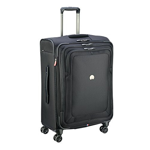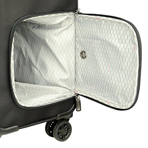 Details: Cruise Soft by Delsey Paris is made for the traveler who is looking for durable luggage with exceptional organization options. This 25 inch suitcase is fully featured to make your next trip a breeze and includes Elsey's 2nd Generation Overweight Indicator which determines if your packed case is over 50 pounds, which saves you incremental airline fees. The two front exterior pockets and a side easy-access compartment for shoes, toiletries or return home laundry make organizing your belongings easy. This case is maneuvered on double spinner wheels by a dual locking trolley handle with a neoprene non slip grip as well as a recessed neoprene cushioned top and side carry handle, which make lifting a fully packed case more comfortable. The interior of this case has a suiter clip, elastic tie down straps, 3 zippered pockets, a zippered divider in the lid for maximum organization, and expands up to 2 inches. The bag is made of ballistic nylon, which is extremely resilient and constructed for long lasting use. It also features extra rubberized protection around the corners of the case as well as an injected kick plate to offer additional protection at key stress points. The Cruise Soft collection is protected by a Worldwide Limited 10 Year Warranty.