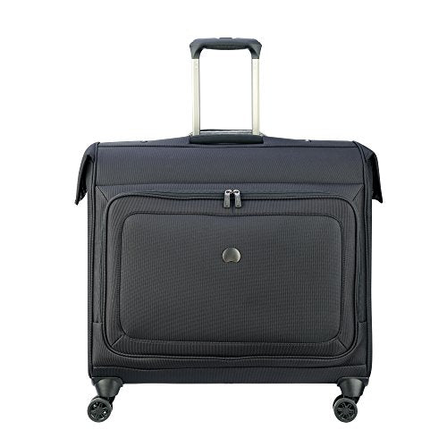 Details: Cruise Soft by Delsey Paris is made for the traveler who is looking for durable luggage with exceptional organization options. This spinner garment bag is fully featured to make your next trip a breeze. This check in sized bag is fully featured to easily transport clothing to minimize wrinkles. The exterior of this case includes a large zippered pocket for easy access to last minute items, a rubberized TPR non slip grip on the dual locking trolley handle, a recessed top carry handle, as well as an injected kick plate and reinforced corners for additional protection. The interior of this garment bag has a book opening design with a universal clamping system and provides multiple organization options including tie down straps, two zippered compartments for personal items, an extender panel with folding bar for longer garments like dresses or suits, two shoe pockets, two corner pockets for belts, ties, and small items, two hooks for use over a door or on a closet rod and a suiter clip. The Cruise Soft collection is protected by a Worldwide Limited 10 Year Warranty.