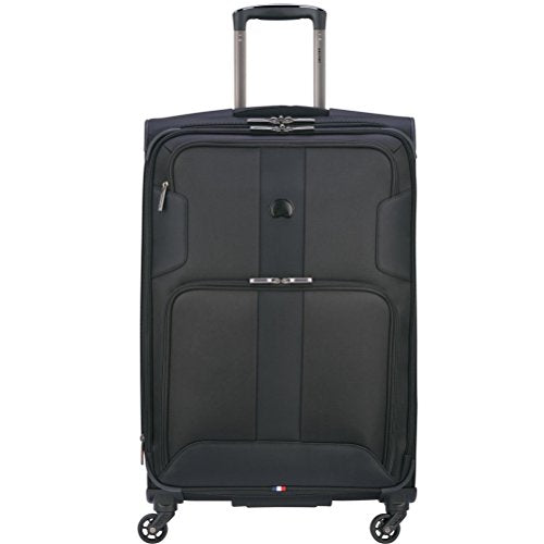 Details: This 25" expandable spinner upright by DELSEY is part of the sky max collection, which has tons of organization, a light yet tough construction at a great value. 8 total pockets for exceptional storage: three front pockets for maximum organization, back pocket for magazines, mesh pocket and wet pocket in lid, shoe pockets in main compartment. Guardian self repairing interlocking zippers. Cushioned neoprene top and side carry handles. Easy to grab bottom handle. Integrated id tag. Interior tie-down straps. Expansion for maximum packing flexibility. Dual position trolley system for 2 or 4 wheel use.