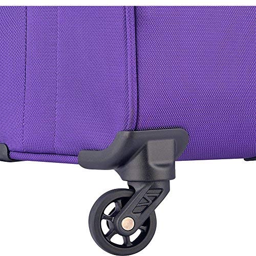 Details: This 25" expandable spinner upright by DELSEY is part of the sky max collection, which has tons of organization, a light yet tough construction at a great value. 8 total pockets for exceptional storage: three front pockets for maximum organization, back pocket for magazines, mesh pocket and wet pocket in lid, shoe pockets in main compartment. Guardian self repairing interlocking zippers. Cushioned neoprene top and side carry handles. Easy to grab bottom handle. Integrated id tag. Interior tie-down straps. Expansion for maximum packing flexibility. Dual position trolley system for 2 or 4 wheel use.
