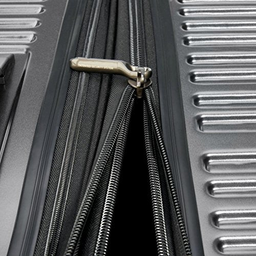 Details: Made from 100% polycarbonate, a highly impact-resistant plastic that is strong and lightweight, with a scratch-resistant matte finish. Double spinner sheels ensure superior mobility. Stay connected on the go - USB port and dedicated power bank sleeve to conveniently charge electronics. Main compartment expands for maximum capacity and packing flexibility. Split book opening with two packing compartments. Soft touch top carry handle provides maximum comfort. Rubberized, TPR non slip grip on trolley handle. Recessed TSA accepted lock.
