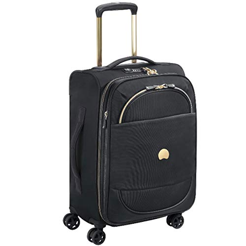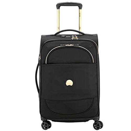 Details: Elegant, functional and lightweight, the Montrouge collection will make fashion forward travelers feel and look fabulous on the go! The gold metal accents, vegan-leather trim and stylish interior print bring the perfect touches to this feminine collection. This spinner upright features a unique split book opening with two full size compartments for optimized organization, as well as removable and washable lining (delicate cycle) for added convenience. It is also equipped with an integrated TSA-accepted lock, and DELSEY patented zip SECURITECH technology that makes it 3 times stronger than a standard zipper. Silent-running, double spinner wheels offer superior maneuverability for travelers rushing through airports. Established in 1946, Delsey has used its flair to marry tradition with innovation, elegance with modernity and design with practicality. We design tomorrow's luggage with inspiration from many places: travelers and their journeys, societal changes and the evolving environment. As a result our luggage keeps getting lighter, better fitted and more environmentally friendly. Enabling our customers to travel elegantly and limiting any negative impact on the environment is our raison d’être.