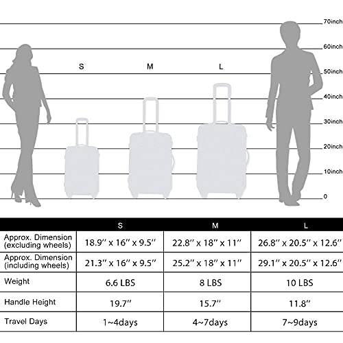 - The 3 pieces set includes 20 inches, 24 inches and 28 inches. One set just satisfies all your different travelling needs.