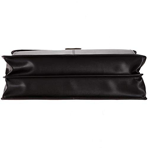 - Genuine top grain leather exterior with double gusset flapover construction, secure lock closure, and fully lined interior