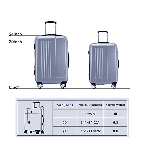 - 【Luggage sets】: 2pc luggage set upright, 100% ABS material hard shell is engineered designed for International travel, durable and lighter,features textured finish to the harshest travel conditions.