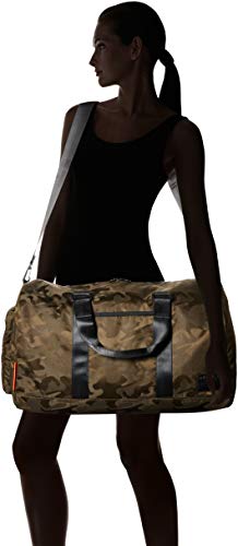 Details: Diesel discover duffle bag in coated nylon featuring a tonal camouflage print. External and internal pockets, adjustable and removable shoulder strap.