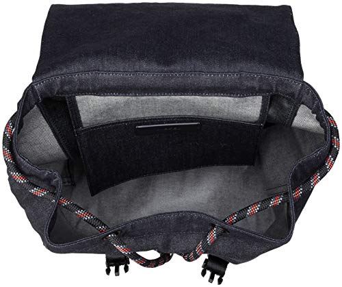 Details: This compact backpack is crafted from dark rinse denim and accentuated with a bold Diesel logo for ultimate standout style. It features an internal padded pocket ideal for all your high tech gear.
