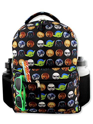 Details: This Yankee Toy Box exclusive 16 inch Star Wars backpack is perfect for any day at school or camp! This Disney backpack features one zipped main compartment, one zipped front pocket, and two mesh side pockets. The compartments provide room to carry books, notebooks, folders, binders, and smaller school supplies! This quality book bag can be hung up when not in use by the padded handle. This school bag is designed in durable fabric with adjustable foam padded shoulder straps to relieve stress from your child's shoulders, and a padded back for added comfort. The length of the shoulder straps is adjustable for the perfect fit. The side mesh pockets are made from athletic mesh for extra durability. This awesome school bag features your favorite Disney Star Wars characters like, C-3PO, R2-D2, Chewbacca, Yoda, Darth Vader, and his Stormtroopers!