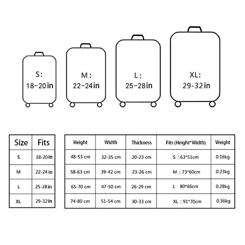 1.S (Suitable for 18--20 inch luggage) ,M (Suitable for 22--24 inch luggage), L (Suitable for 25--28 inch luggage), XL (Suitable for 29 - 32 inch luggage),If your luggage is hard shell style, please order a bigger size