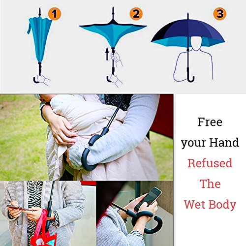 Details: Have you ever met such a problem on the rainy day? Have you ever tried the umbrella caught by the door? Wet the pants by wet umbrella? The traditional umbrella wet umbrella on the outside, into the room, the wet umbrella will be the indoor floor wet umbrella next to the clothes will be wet clothes when you get off, the traditional umbrella is inwardly, and stuck the door to the rain. Umbrella down closed, easy to accidentally hurt other people now,you just carry one Dofover reverse folding umbrellas,the problem is easy slove feature: Fabric: Double layer of 201t nano high-density impact cloth, rain dripping dry, umbrella surface with a layer of sunscreen coating, isolated uv, sunscreen> 50 + high-quality steel umbrella bone: Fine black paint steel skeleton, the inner layer of yarn leakage treatment, umbrella solid easily resist strong winds (7-8 strong winds do not damage) carbon fiber umbrella rod: Carbon fiber material, solid and strong quality light weight hands-free matte handle: Handle surface matte texture feel delicate anti-slip non-slip c-shaped design umbrella can also release your both hands digital printing process: The use of high-quality digital jet printing process fine more high-definition beautiful package included: 1x inverted rain umbrella.