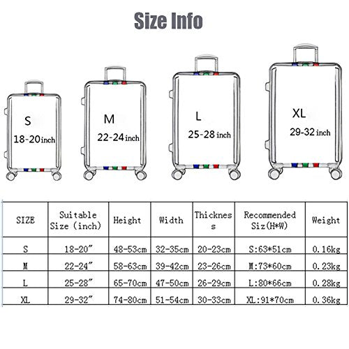 • COVERS SIZE--Dofover's luggage covers are easy to put on and remove. Durable and washable, 4 sizes fits almost any Brand luggages. S: fit 18-20 inch luggage, M: fit 22-24 inch luggage, L: fit 25-28 inch luggage, XL: fit 29-32 inch luggage.