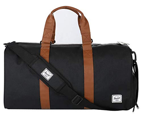 Herschel Novel Duffel Bag, Black/Tan Synthetic Leather, Mid-Volume 33.0L
