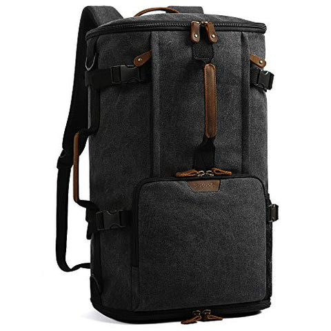 WITZMAN Men Vintage Canvas Rucksack Travel Duffel Backpack Retro Hiking Bag 2033 (19 inch Black)