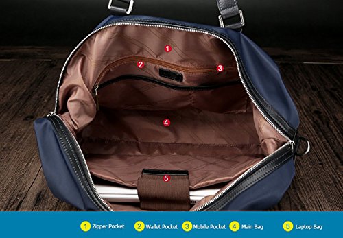 - ★ Detail Display ①Zipper: Simple lines, can be placed mobile phones and other portable, convenient and quick. ②Two Using Method: Hand Travel Bag, Shoulder Travel Bag ③Package Capacity: Zipper Pocket, Main Bag, Laptop Bag, Wallet, Mobile Pocket. ④Multipurpose: Your good companion for traveling, could be served as a gym/ sports/ overnight/ weekend/ airplane carryon/ shopping. ⑤Bottom: Foot nail to prevent abrasion.