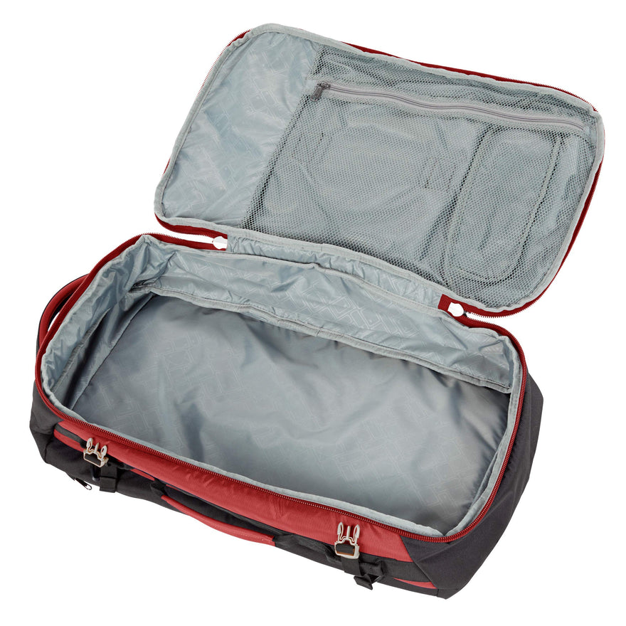 - 3 ways to carry make this bag versatile for any adventure; carry it over your shoulder, on your back, or as a duffel; in addition to the main compartment, a small front pocket offers quick access to smaller items - perfectly sized for smaller toiletry kits and electronics