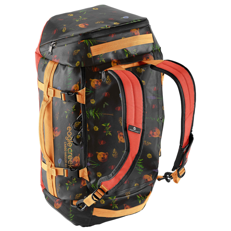Details: Eagle Creek Cargo Hauler Backpack Duffel Bag. Designed to lug and haul everything you need, this backpack duffel is made from tough materials, has multiple carrying options and conveniently rolls into itself for easy storage. Roll it out for your next adventure and you're ready to take off. Made from ultra-strong Bi-Tech Armor materials. Versatile carrying points for ease of travel.Bag rolls into front pocket for convenient storage.