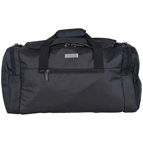Details: Pack your must-haves for the daily commute or an overnight trip inside this commuter duffel bag from Kenneth Cole REACTION. The Kenneth Cole REACTION the Brooklyn commuter 21 multi-pocket RFID travel duffel- bags exclusive is made from durable polyester and features a contemporary design with lightweight construction and multiple pockets for organization. In addition to the roomy main compartment, this duffel bag includes a faux leather PVC bottom, an rfid-protected zipper pocket to block unwanted scanning, and a side zipper pocket for added storage. A side shoe pocket offers separate storage for footwear, While dual top handles and a removable strap offer versatile carrying options to suit your mood and style. Removable, adjustable, non-slip padded shoulder strap extends to be 55" Long to accommodate any height. Exterior Dimensions - 21.0"L x 11.0"H x 11.0" D; linear inches: 43"; weight: 2.25 lbs. Backed by a manufacturer's lifetime limited warranty