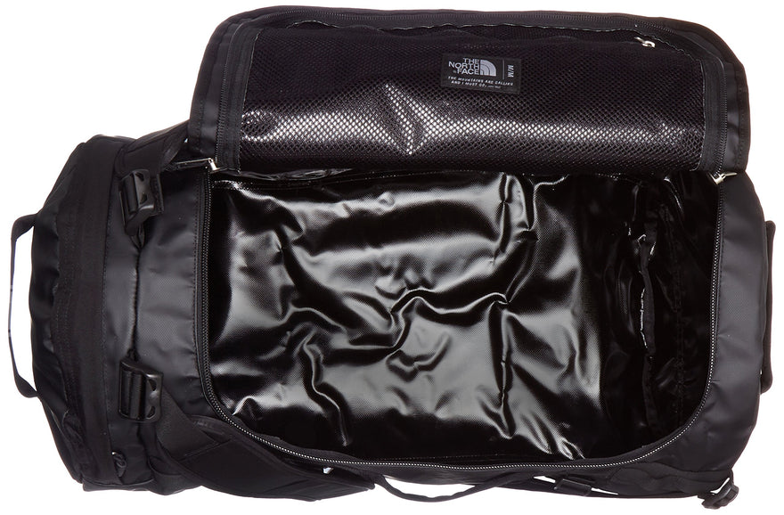 Details: Hit the backcountry or embark on your next outdoor adventure with your essentials packed inside this rugged duffel bag from The North Face. The North Face Base Camp Duffel Medium is made from ballistic nylon fabric with TPE laminate and features a classic barrel shape with compression straps, padded side handles, and detachable, adjustable Alpine-cut shoulder straps that offer a comfortable ergonomic fit. Detailed with a weather-resistant zipper flap, extra bar tacks, and double stitching, this durable duffel includes a zippered end cap compartment that offers separate storage for wet clothes, dirty shoes, or extra gear. Other features of this rugged duffel include an interior zippered mesh pocket and mesh sleeve pockets for increased organization.