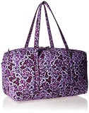 Details: Vera Bradley has crafted the perfect size, carryon compliant duffel to fit everything you need for your next adventure. The Iconic Large Travel Duffel is the fashionable solution for storing your travel essentials, packing efficiently, and avoiding checked bag fees - measuring 11.5 inches high, 22 inches wide, and 11.5 inches in diameter. The interior of this spacious duffel features one zip pocket and three elastic mesh pockets. Skip the extra carry on and take advantage of these pockets to organize your cosmetics, hair products, jewelry and other toiletries. The exterior features one zip pocket, a charger pocket, and three slip pockets that are perfect for stowing your travel essentials – wallet, phone, boarding passes, reading material, and snacks. Keep your most important items at your fingertips with pockets positioned for quick access and soundly fastened for your flight. The Iconic Large Travel Duffel keeps you hands-free so there is plenty of room for adventure. With a 15 inch strap drop, you can grab the dual straps on the go or throw over your shoulder for hands-free attention - either way, the top zip closure keeps your personal items securely protected. Whether it’s a weekend getaway or a girl’s trip, Vera Bradley has designed this necessity for every traveler. Crafted with our lightweight signature cotton, you can use the duffel to upgrade your organization or fold flat to pack as an extra travel bag. When quality material meets precise craftsmanship, you get a bag made to last through all of life’s journeys. Care: Machine wash cold, gentle cycle, use only non-chlorine bleach as needed; line dry